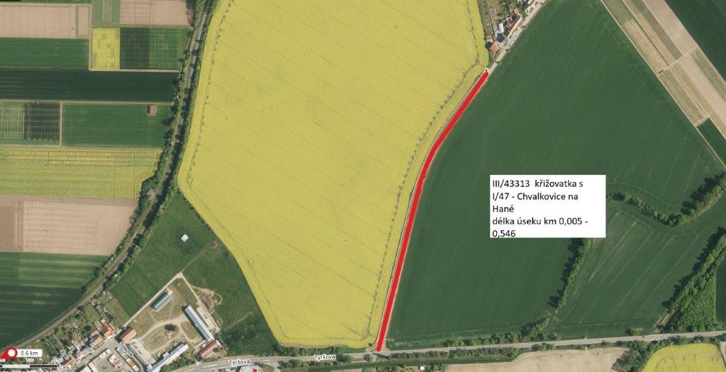 Stavbou je provedení zesílení obrusné vrstvy v celé šíři vozovky, včetně vyrovnání stávajícího příčného i podélného sklonu komunikace, na silnici III/43313 Chvalkovice na Hané – křiž. I/47. Zesílení obrusné vrstvy vozovky v délce úseku 541 m, šířka vozovky 6,3 m, opravovaná plocha povrchu vozovky 3 482 m2, provozní staničení km 0,005 – 0,546.